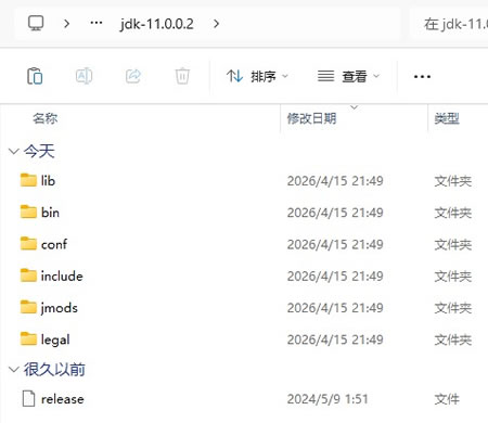 1)我使用的是 Windows 系统,下载 openjdk-11.0.0.2_windows-x64.zip,解压后得到下图所示的文件夹: