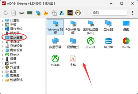 "显示设备"分类展示了显卡的详细信息,包括GPU型号、显存大小、驱动版本等。如果你要买二手显卡,用AIDA64检测一下就能知道是不是矿卡。
