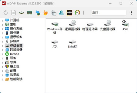 "存储设备"分类显示了硬盘和SSD的信息,包括型号、容量、健康状态等。这里还能看到硬盘的SMART数据,帮你提前发现硬盘可能出现的故障。