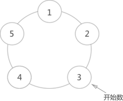 约瑟夫环问题其实还可以这样玩:如果顺时针报数,有人出列后,顺时针找出出列位置的下一个人,开始反方向(也就是逆时针)报数,有人出列后,逆时针找出出列位置的下一个人,开始顺时针报数。依次重复,直至最后一个出列。例如,还是从编号为 3 的开始数,数到 2 的人出列: